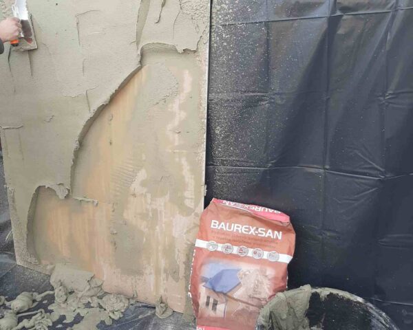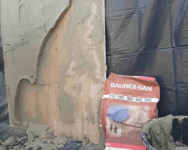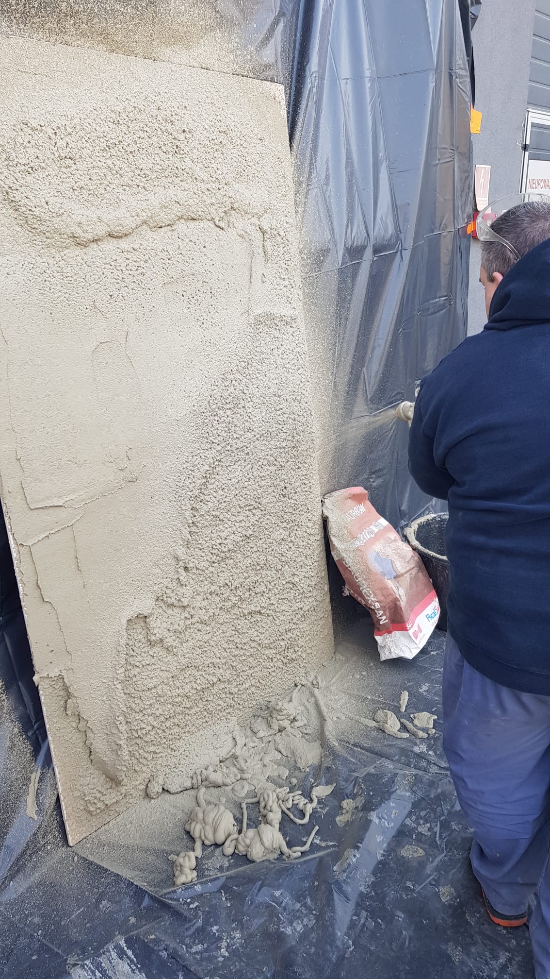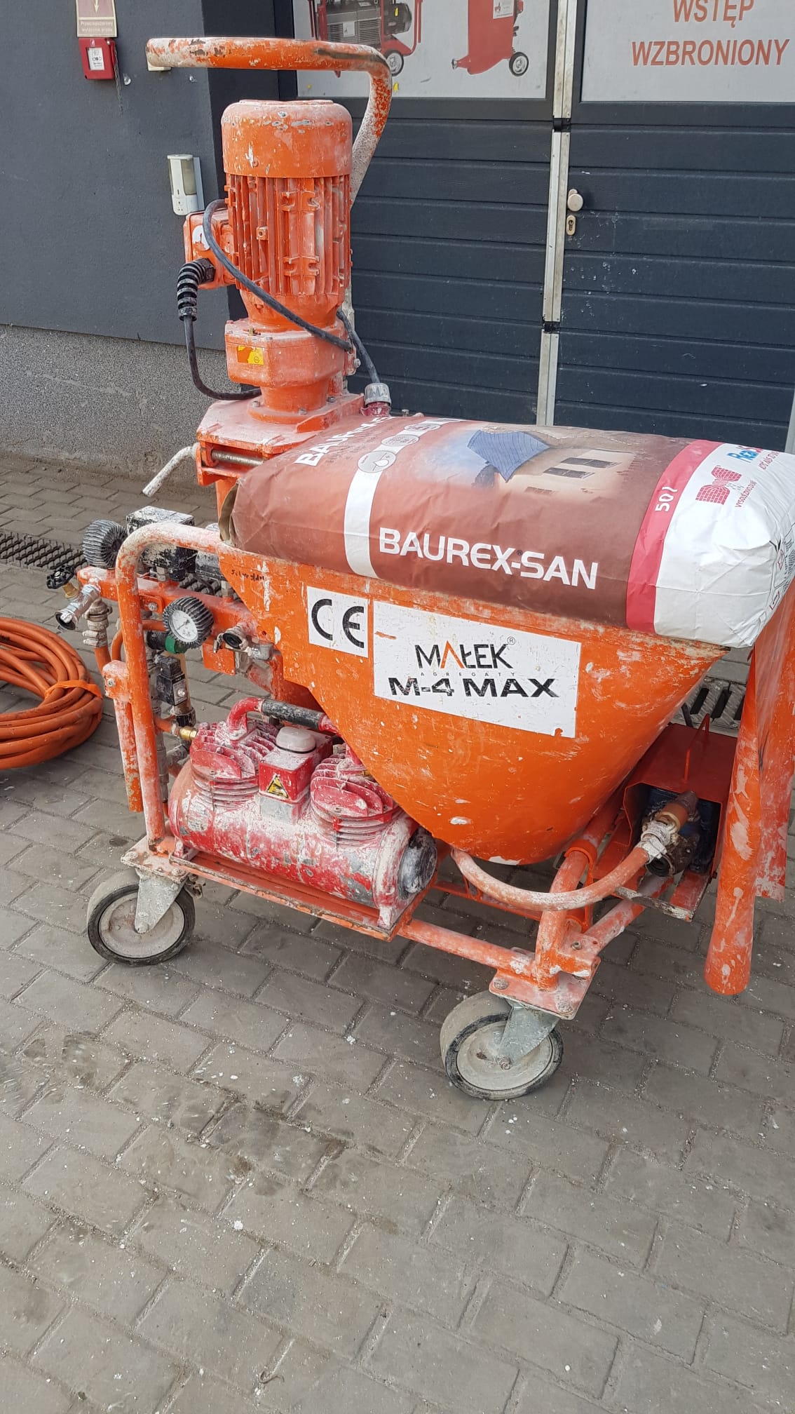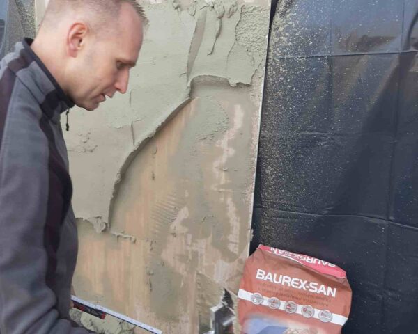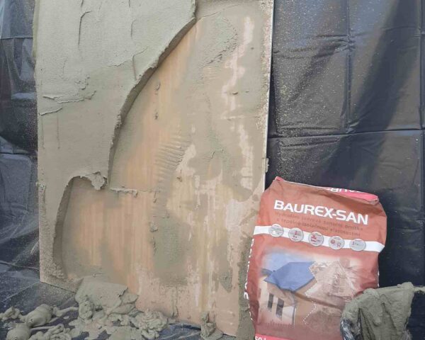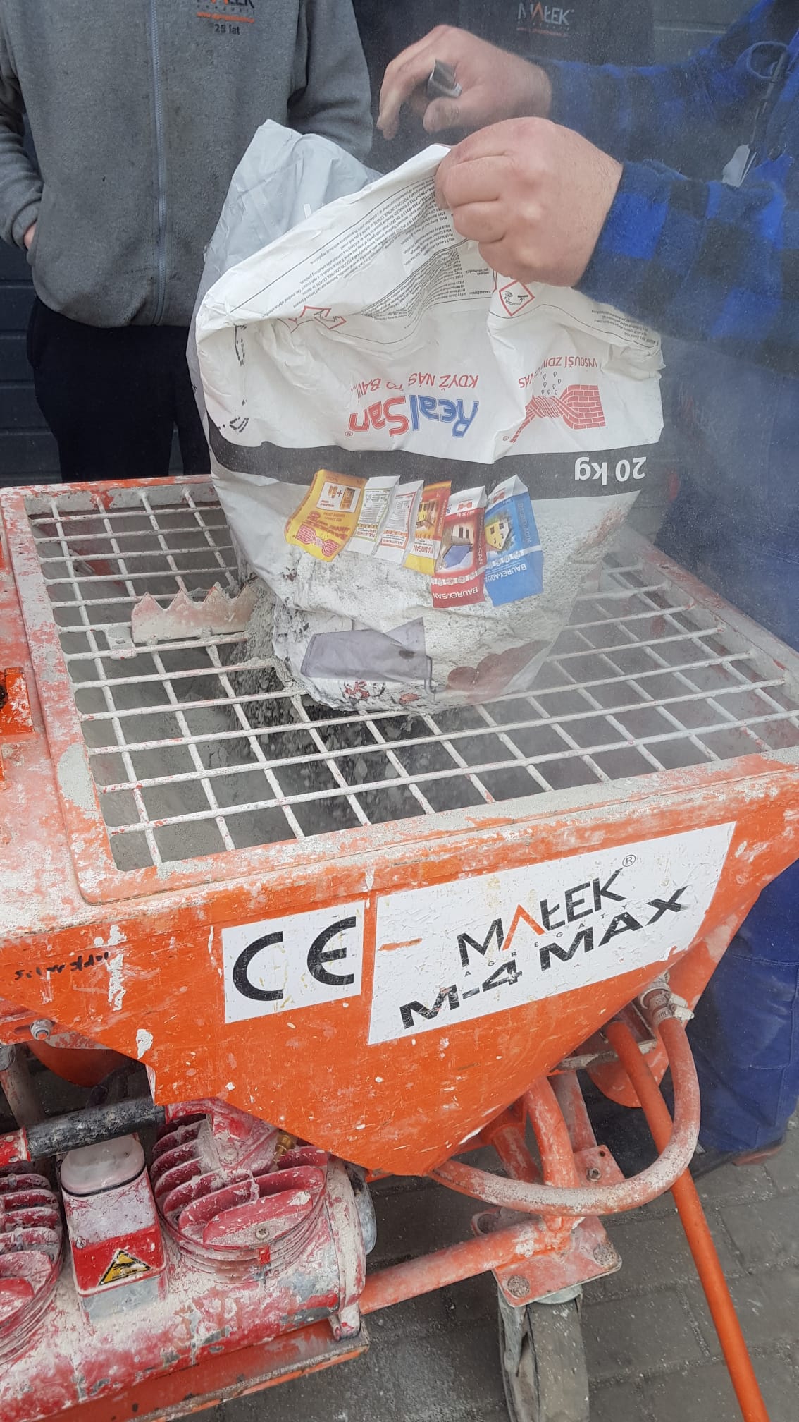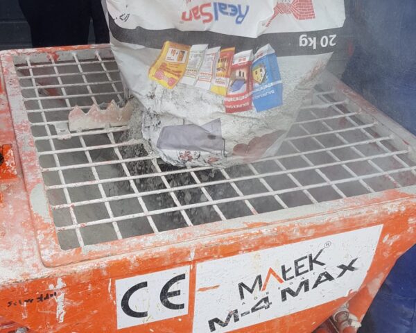 Próby tynków renowacyjnych Baurex na agregatach tynkarskich Małek