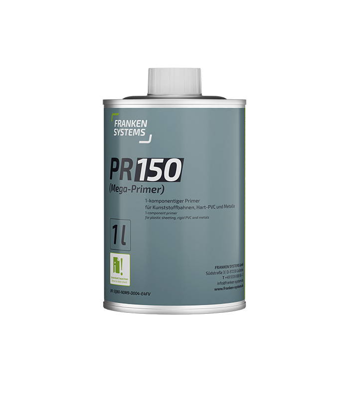 PR150 (Mega-Primer) jest stosowany jako podkład pod folie z tworzywa sztucznego i elastomerowe, np. folie TPO/FPO, folie PVC, folie EPDM i profile plastikowe wykonane z twardego PVC oraz podłoża metalowe.